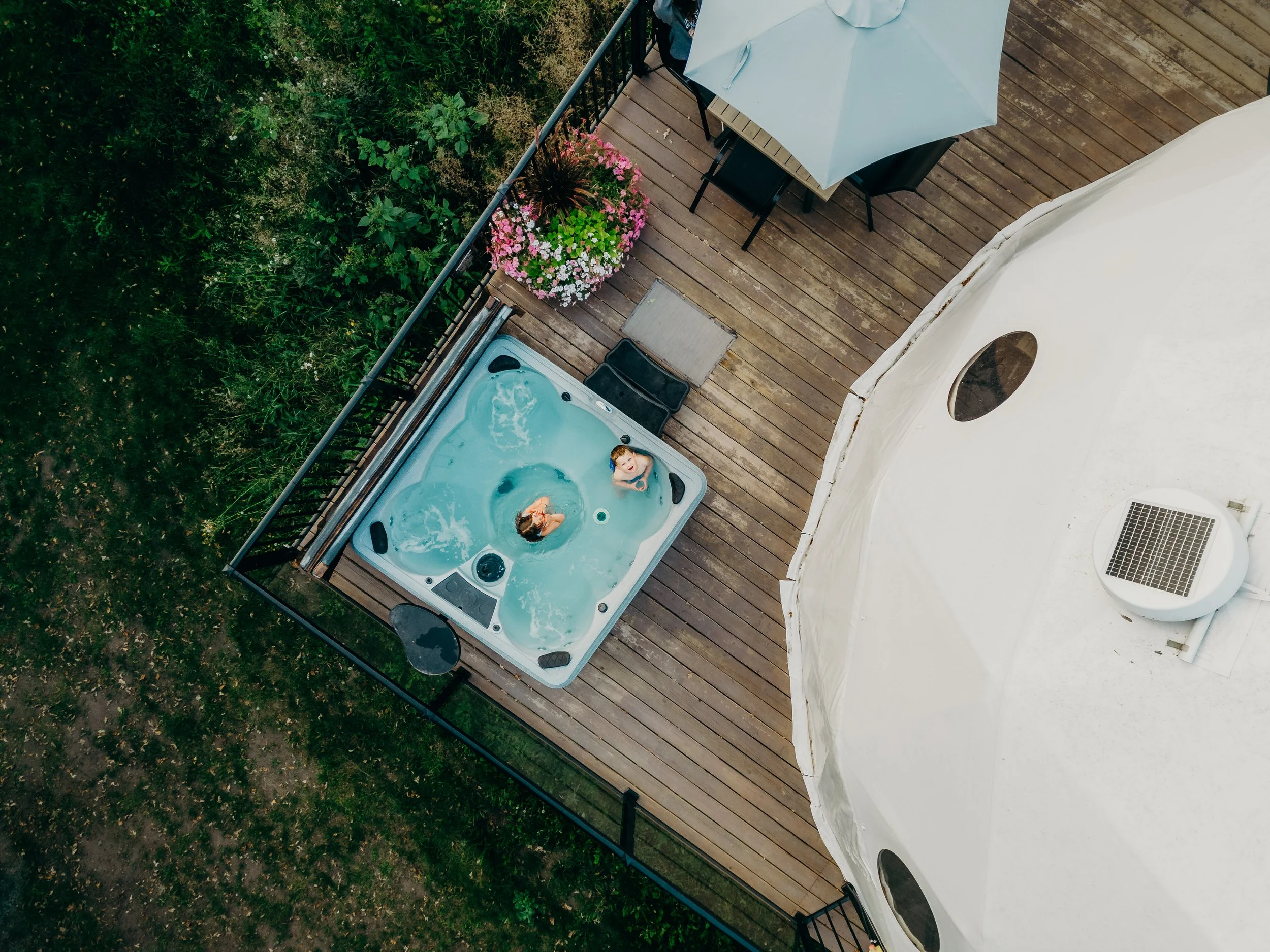 Private Deck with Patio Table, Hot Tub, BBQ, Yoga Mat, Games and Hammock.